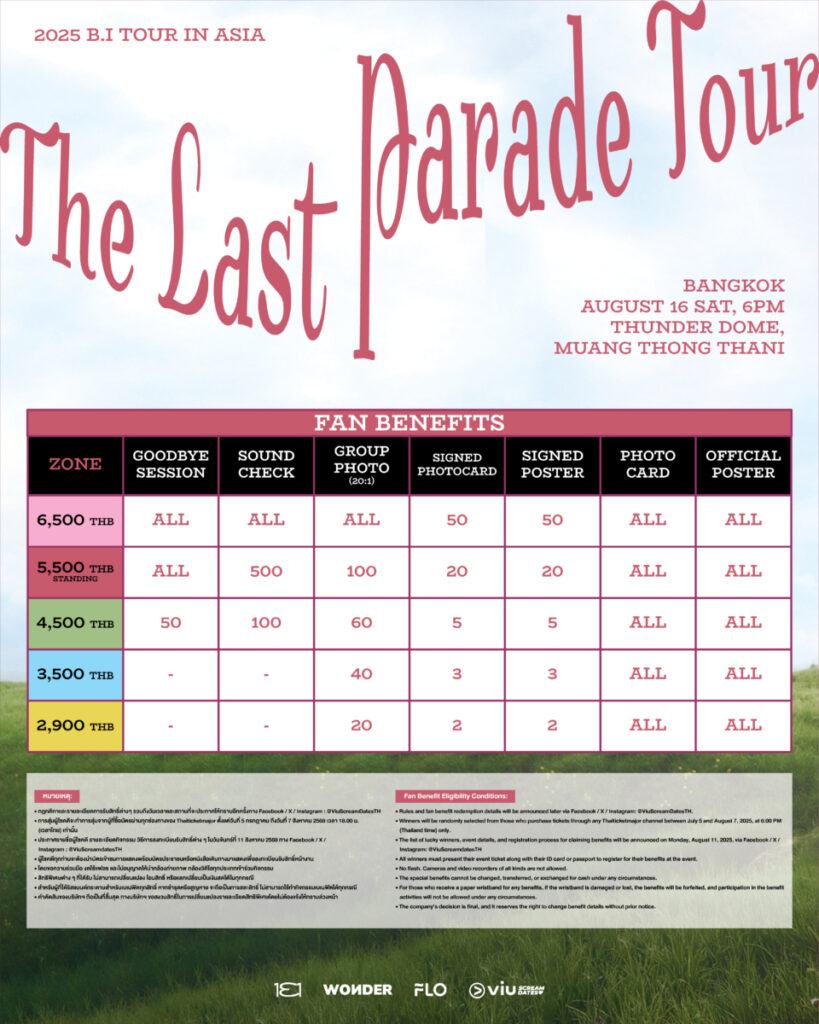 สำหรับ “2025 B.I TOUR: The Last Parade Tour in BANGKOK” จะไม่ใช่เพียงแค่คอนเสิร์ต แต่งานนี้แฟนๆ จะได้มาร่วมท่องไปในวันเดอร์แลนด์ ดินแดนของ B.I ที่จะจูงมือไอดีไทยร่วมบันทึกภาพความทรงจำของบทเพลงเก่าและใหม่ ถ่ายทอดด้วยหัวใจของศิลปินที่ทุ่มเททุกวินาทีให้กับเวทีและแฟนๆ ของเขาทุกคน