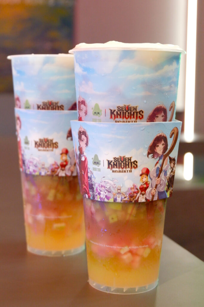 นอกจากนี้ Cup Sleeve คาดแก้วเครื่องดื่ม ยังมีโค้ดลับให้ลูกค้าที่ซื้อเครื่องดื่ม “Seven Knights Pink“ หรือ “Seven Knights Pink Cream Cheese” ได้ร่วมสนุกด้วยการนำ redeem code ที่ได้ไปแลกรับกล่องรางวัลในเกม “Seven Knights Re:BIRTH” โดยจะเป็นการสุ่มแจกตัวละคร และไอเท็มลับที่ซ่อนอยู่ คุณจะได้สนุกกับการเล่นเกม แถมยังเอนจอยโมเมนต์สุดๆ ในทุกช่วงเวลาไปกับเครื่องดื่มของ “NOSE TEA”