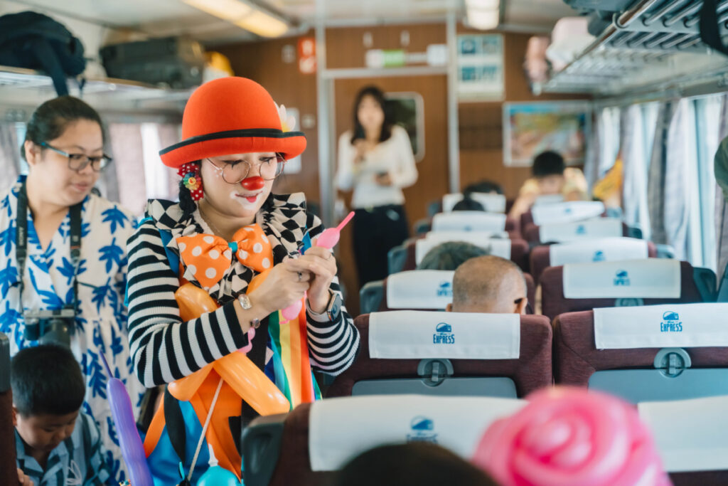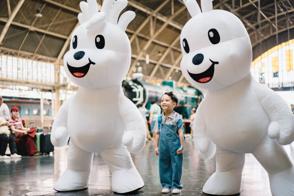 การเดินทางเริ่มต้นจากกรุงเทพฯ (หัวลำโพง) มุ่งหน้าสู่หัวหิน (หนองแก) บนรถไฟ KIHA183 สุดเอ็กซ์คลูซีฟ ระหว่างทาง เด็ก ๆ จะได้เพลิดเพลินไปกับกิจกรรมสนุกสนาน ไม่ว่าจะเป็นการแสดงดนตรีแจ๊สสำหรับเด็ก การบิดลูกโป่งเป็นรูปร่างน่ารัก ๆ และการเสิร์ฟเซ็ตเบนโตะสไตล์ญี่ปุ่นถึงที่นั่ง เติมเต็มประสบการณ์การเดินทางให้สนุกตื่นเต้นไม่เหมือนใคร