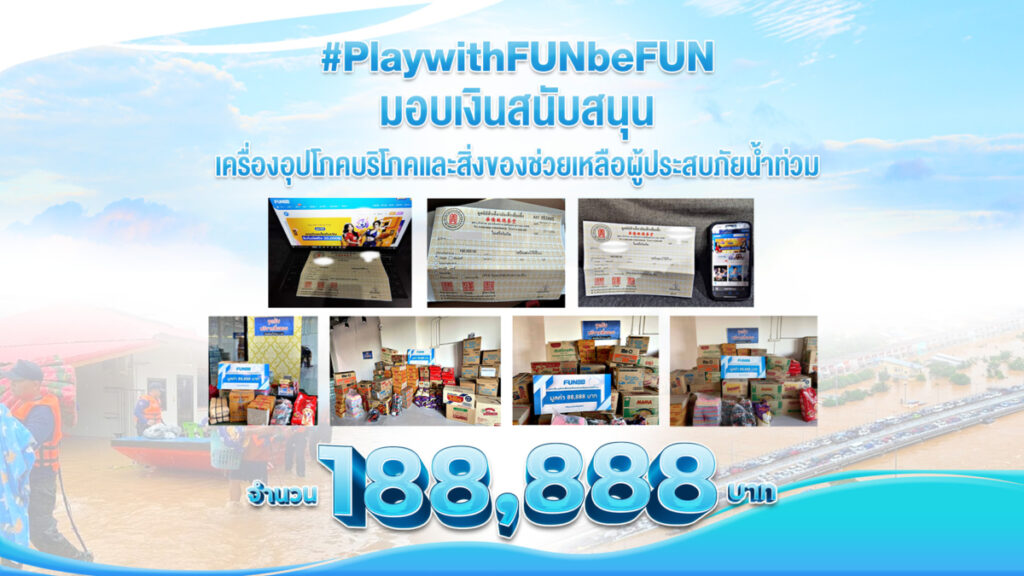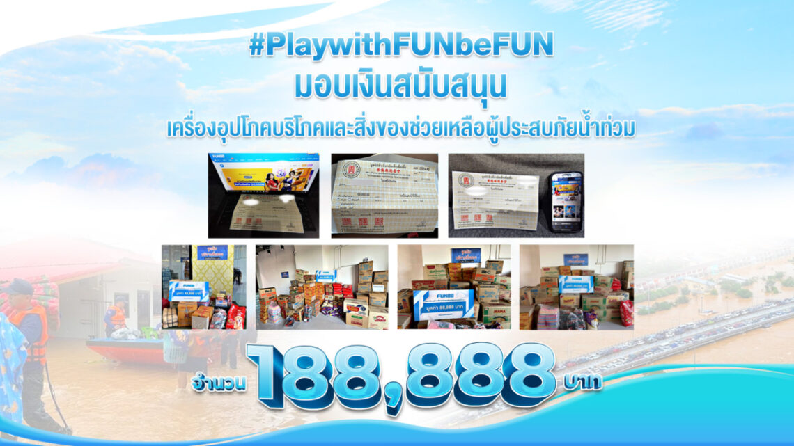 Play with FUN, be FUN ช่วยเหลือผู้ประสบภัยน้ำท่วมภาคใต้ 188,888 บาท