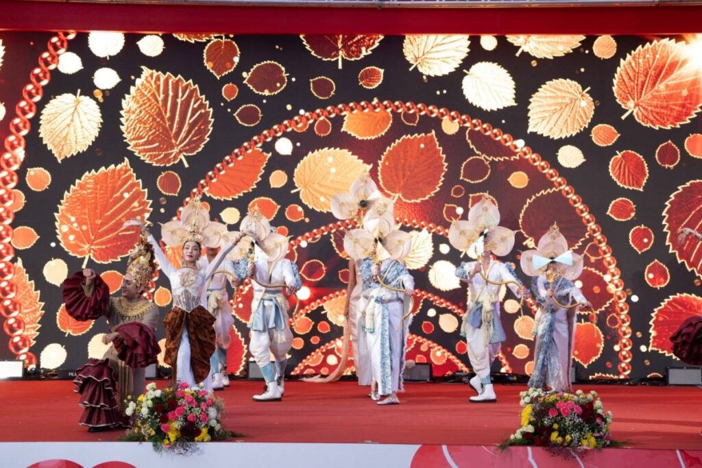 โดยช่วงพิธีกล่าวอวยพรฯ ทั้งสองประเทศได้แลกเปลี่ยนของที่ระลึกเพื่อเป็นสัญลักษณ์แห่งมิตรภาพ พร้อมด้วยการแสดงทางวัฒนธรรมสุดพิเศษจากสาธารณรัฐประชาชนจีนรวม 4 คณะ และการแสดงชุด “ระบำต้อนรับตรุษจีน” จากมณฑลฝูเจี้ยน ขณะที่ประเทศไทยได้นำเสนอการแสดงชุด “ระบำอาชาศรีสยาม” ถ่ายทอดเสน่ห์และบรรยากาศแห่งวัฒนธรรมให้ผู้ร่วมงานได้สัมผัสอย่างใกล้ชิด