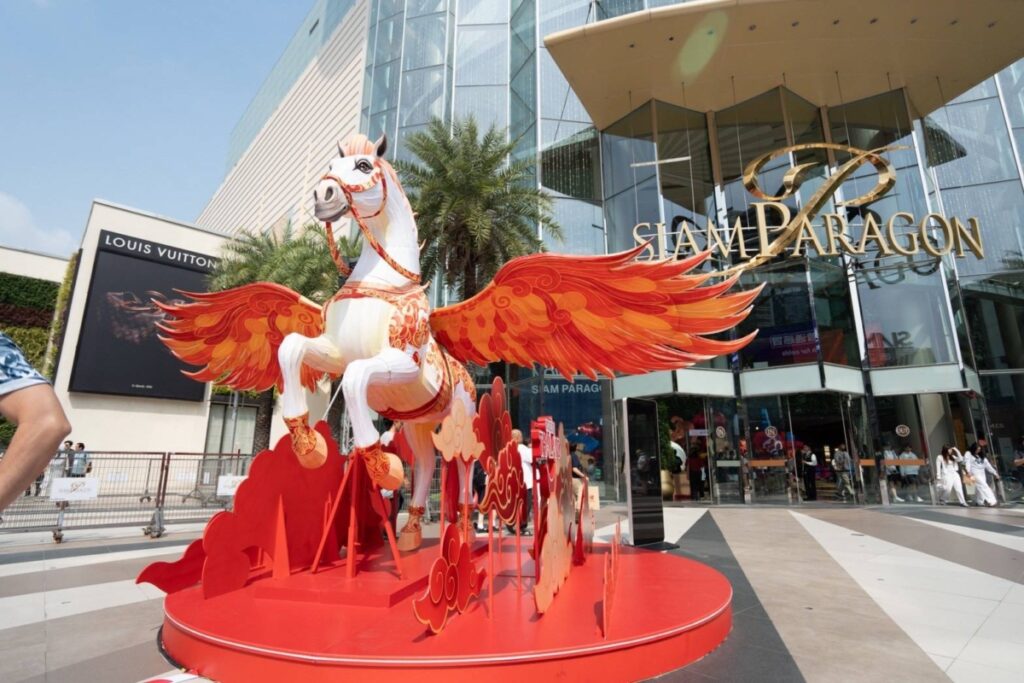 ภายในงานเทศกาลตรุษจีนประเทศไทย ประจำปี 2569 ในวันที่ 14 – 18 กุมภาพันธ์ 2569 ผู้เข้าร่วมงานจะได้ดื่มด่ำกับสีสันแห่งวัฒนธรรมจากการแสดงศิลปะจีนทั้ง 4 คณะ จากกรุงปักกิ่ง นครฉงซิ่ง มณฑลเหอหนาน และมณฑลฝูเจี้ยน ท่ามกลางบรรยากาศการตกแต่งด้วยกระดาษลายฉลุสีแดง ภายใต้คอนเซปต์ “ทางผ่านสู่แสงแห่งความเป็นสิริมงคล” พร้อมแลนด์มาร์กสำคัญเป็นงาน Art Installation รูปม้าขนาดใหญ่สุดตระการตา และจุดเช็กอินถ่ายภาพที่กระจายอยู่ทั่วลานกิจกรรมทั้งยังมีกิจกรรมสาธิตวัฒนธรรมไทย-จีน อาทิ การประดิษฐ์โคมจีน การพิมพ์ลายอักษรมงคล การเขียนพู่กันจีน การวาดหัวโขน การตัดกระดาษจีน การปักผ้าไทย พวงกุญแจดอกไม้ประดิษฐ์ และโหราศาสตร์จีน ก่อนจะเพิ่มความงดงามให้บรรยากาศด้วยโคมไฟมงคลขนาดใหญ่ที่ประดับประดาอย่างตระการตา